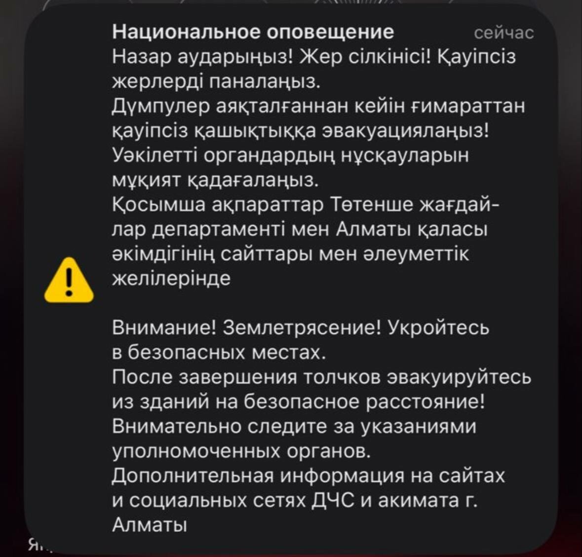 Алдын ала мәлімет бойынша, MSK-64 шкаласы бойынша Алматы қаласында жер дүмпуі сезілмеген.