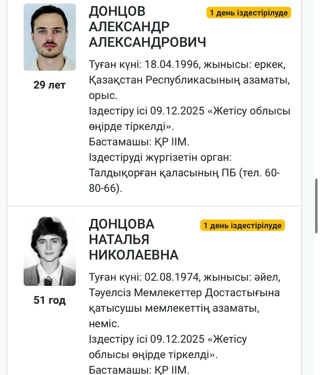 Александр Донцов пен Наталья Донцованы Талдықорған қаласының полиция бөлімі іздестіріп жатыр.